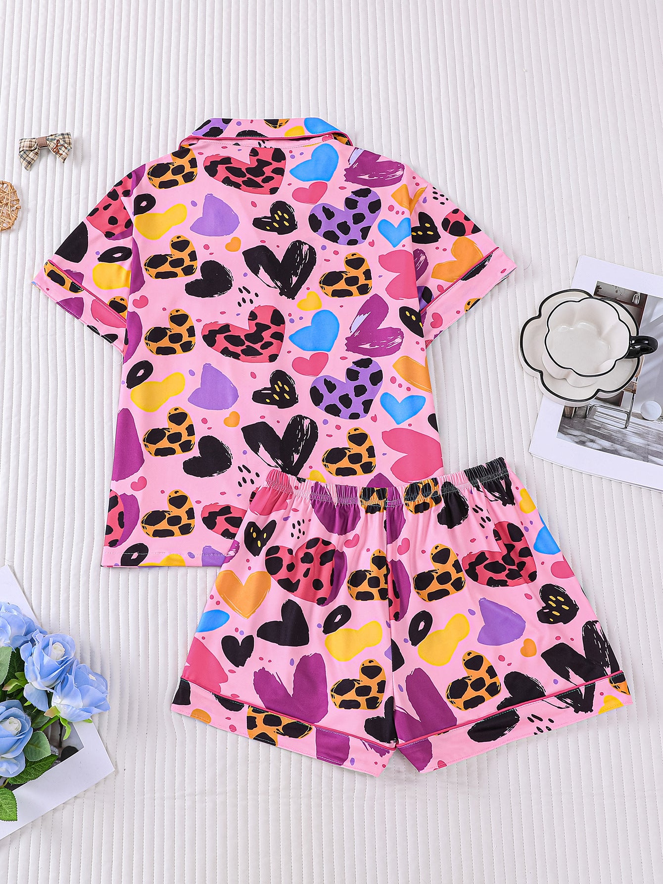 Colorful Heart Print Pajama Set