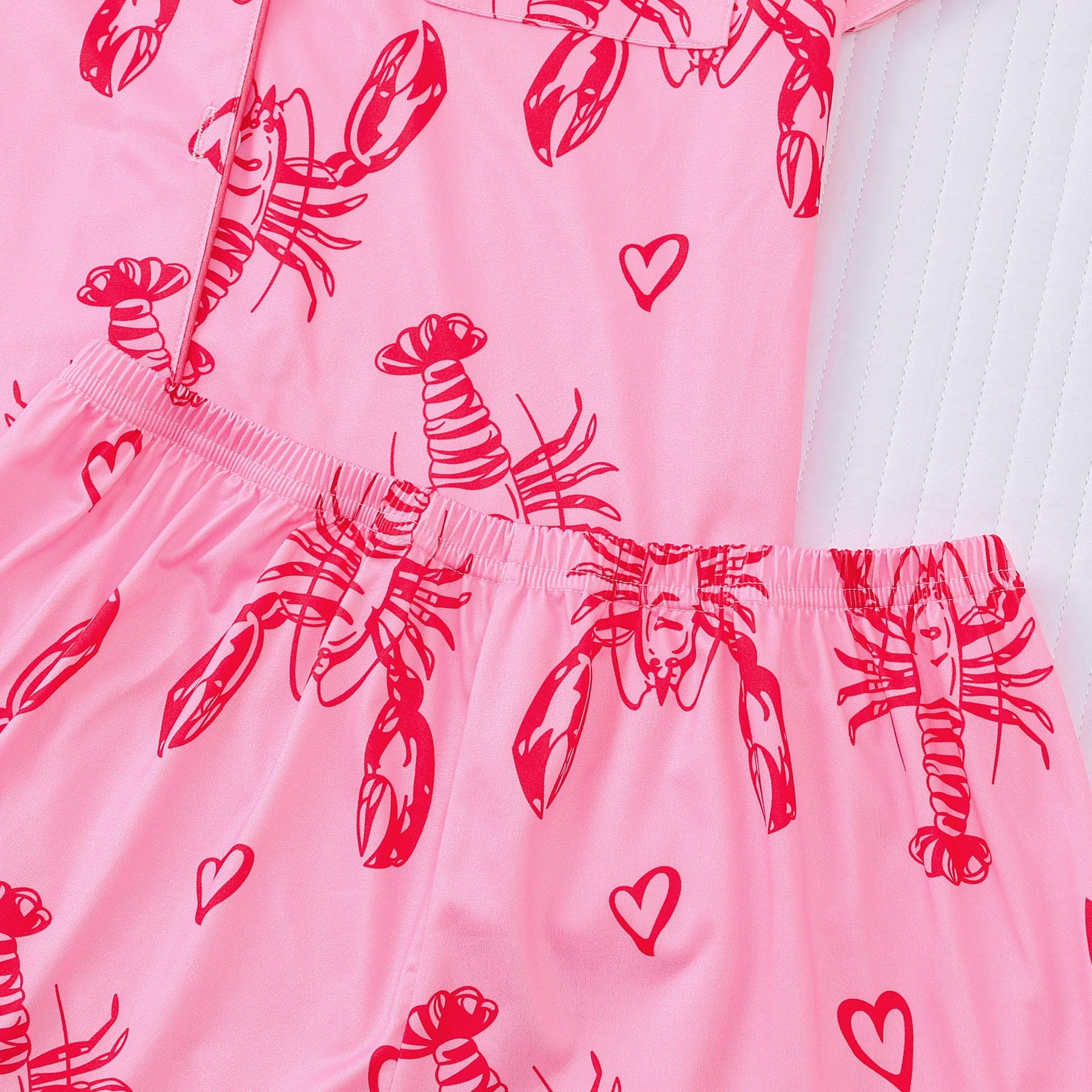 Get cozy with a pinch of cuteness in our Lobster Heart Print Pajama Set! Featuring a short-sleeve button top and matching elastic waist shorts, this lightweight sleepwear duo delivers comfort with a playful twist. The charming lobster and heart pattern adds a fun, nautical vibe that's perfect for warm nights, weekend lounging, and vacation packing.