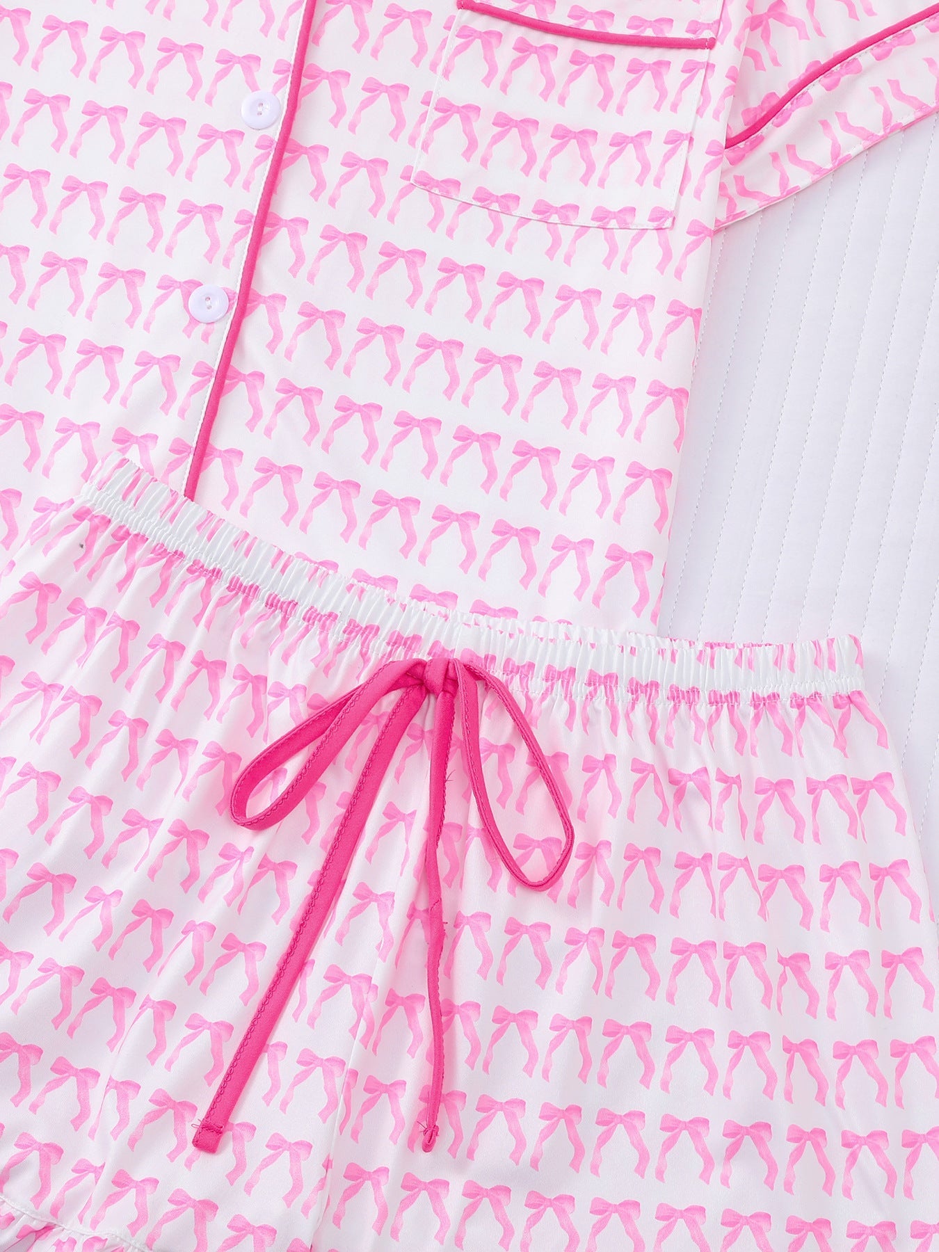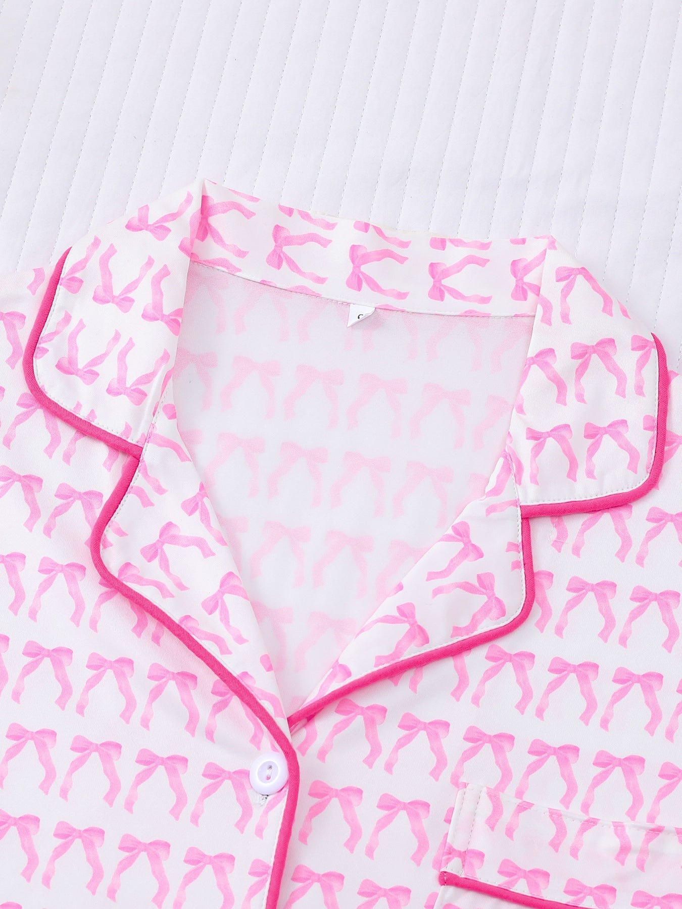 This women’s bow print pajama set is perfect for lounging, sleeping, Valentine’s Day, Galentine’s nights, or gifting. Cute, comfortable, and effortlessly feminine, it’s a must-have for anyone who loves soft, flirty sleepwear.