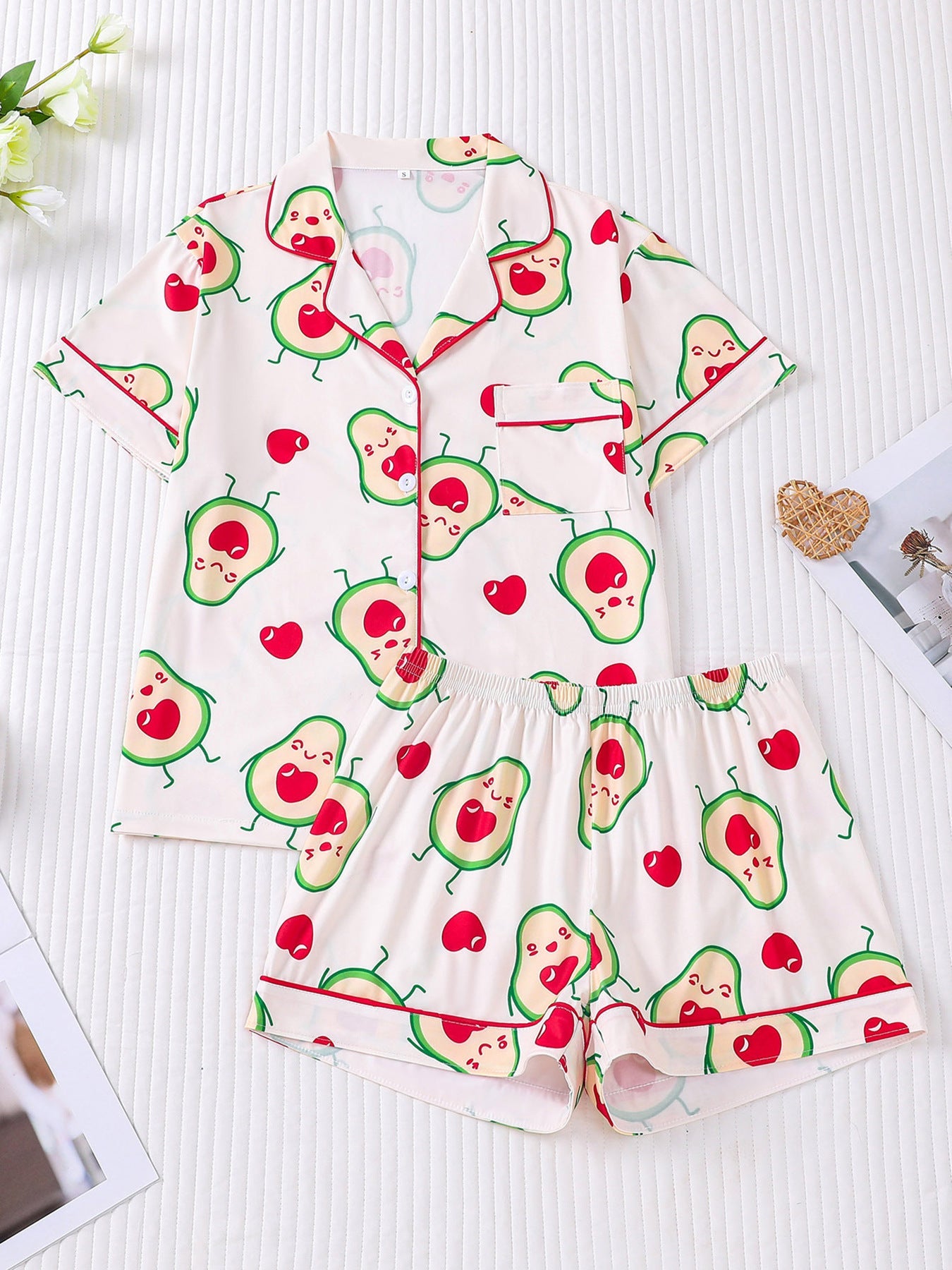 Get comfy with a side of cute in our Cute Avocado Print Pajama Set. Featuring an adorable allover avocado print, this pajama set brings fun personality and cozy comfort together in one irresistible style. Made from soft, breathable fabric, it’s perfect for lounging, sleeping, and enjoying slow mornings at home.